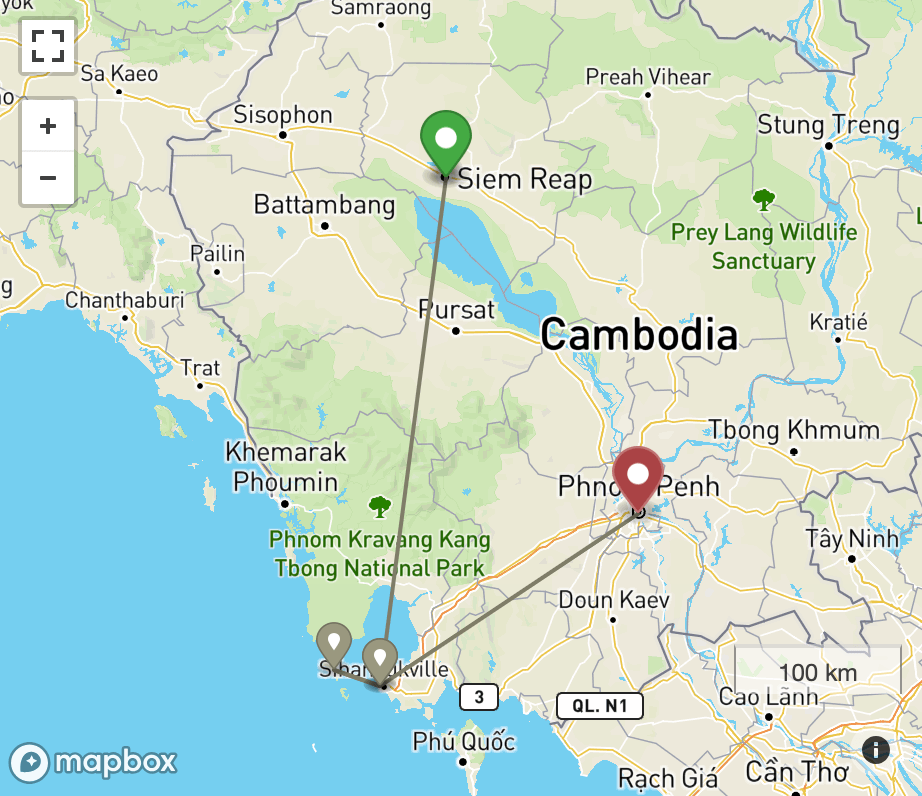 Itinerary: Siem Reap – Angkor – Siem Reap – Sihanoukville – Koh Rong – Phnom Penh